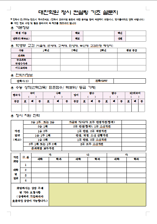 대찬학원 정시 컨설팅 기초 설문지